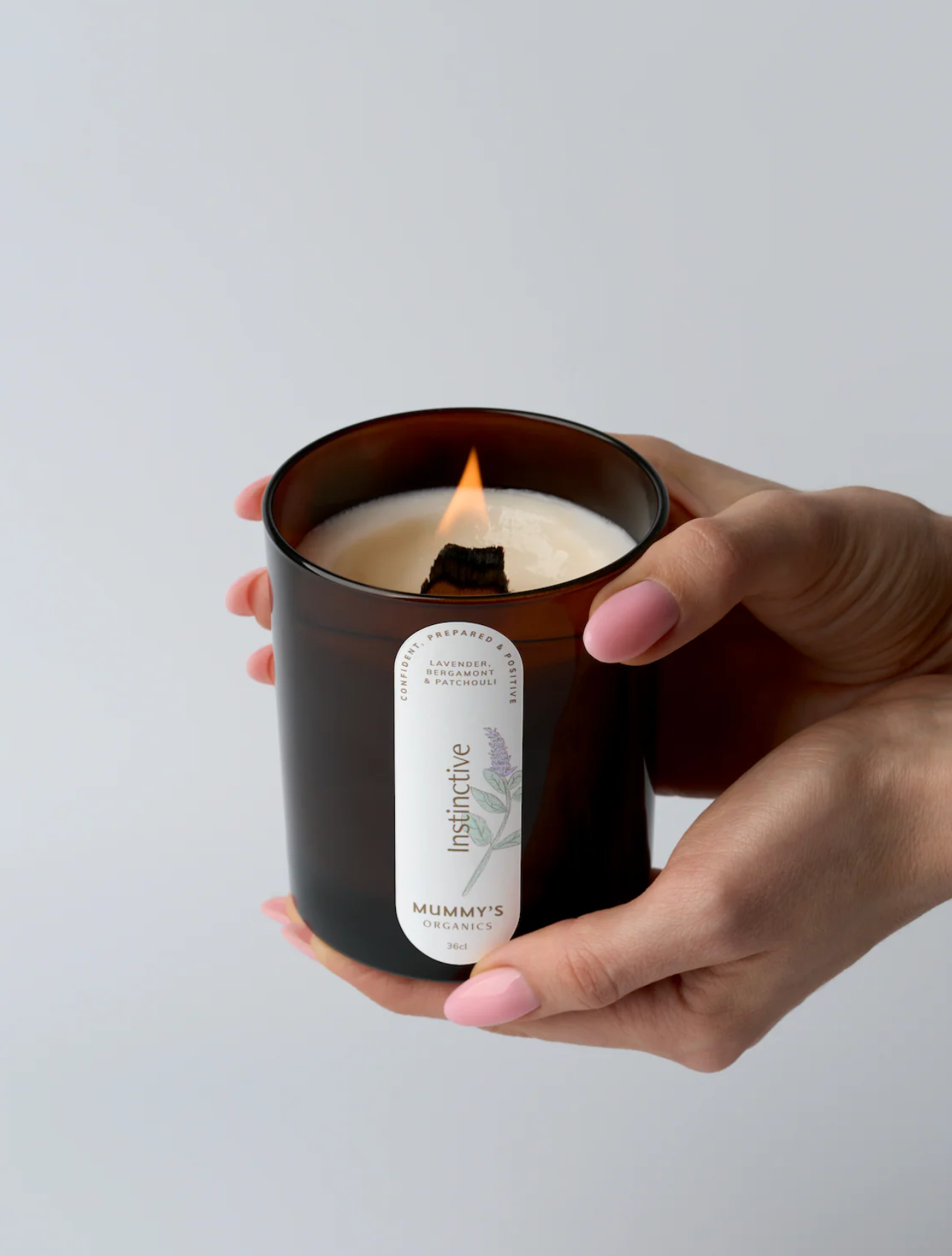Náttúrulegt, eiturefnalaust kerti unnið úr ilmkjarnaolíum af lavender, bergamot og patchouli. Róandi og öruggt á meðgöngu og stuðlar að slökun, jafnvægi og jákvæðri fæðingarupplifun. Kertið er 360 ml og brennslutími er áætlaður 36 klst.